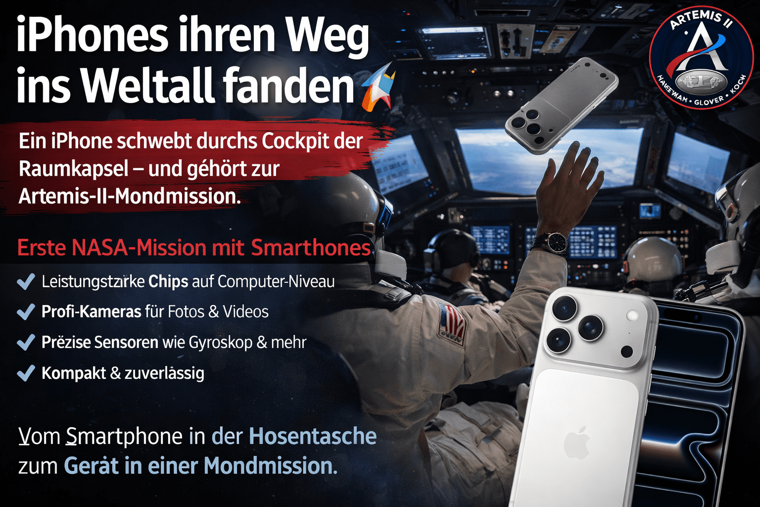 Das iPhone hat seinen Weg vom Wohnzimmer bis ins Cockpit einer NASA-Mondmission gefunden – ein Symbol dafür, wie weit moderne Technologie gekommen ist.